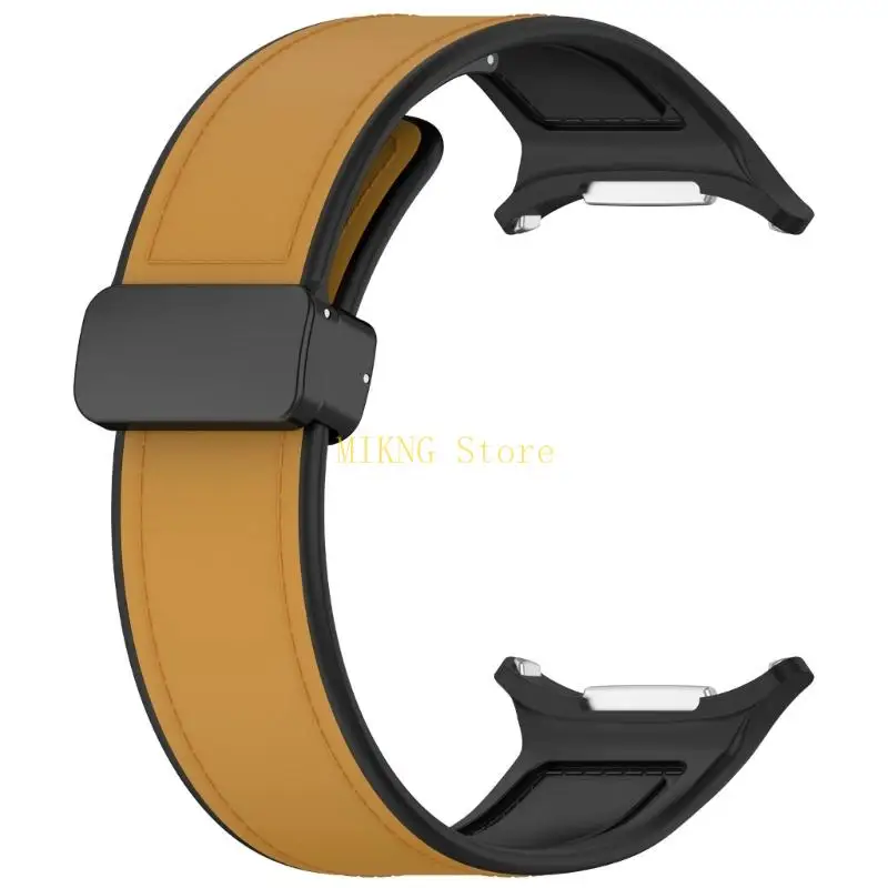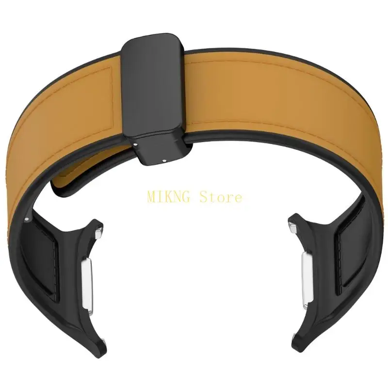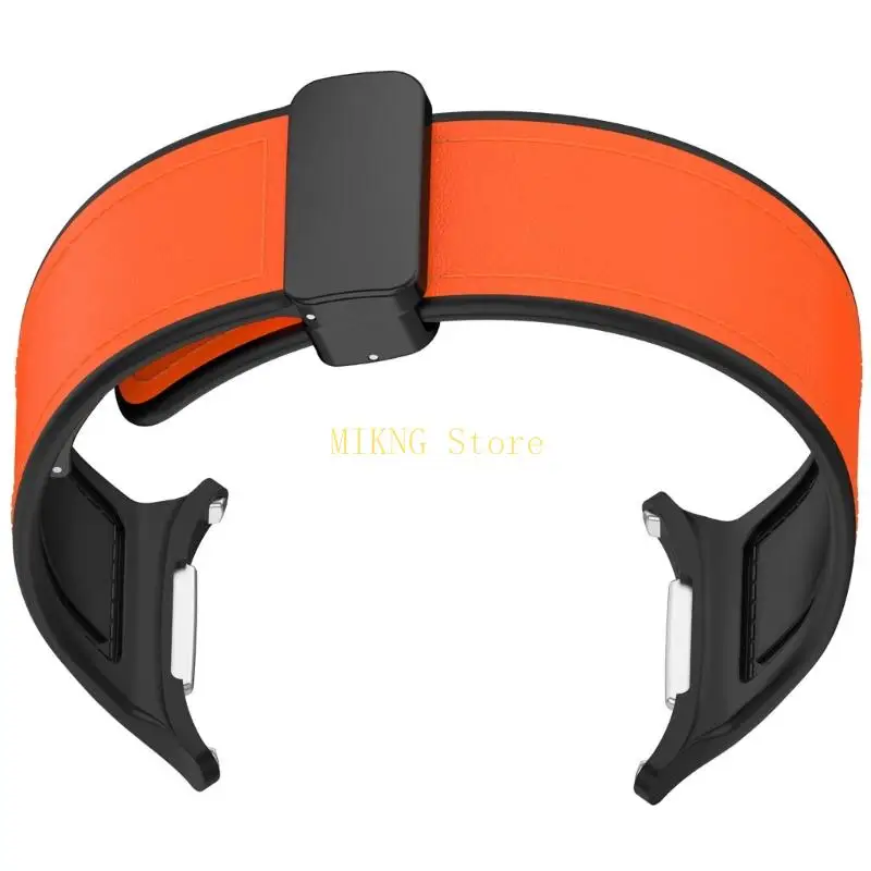 Crafted from soft, elastic silicone blended with leather accent, this adjustable straps ensures secure closure.